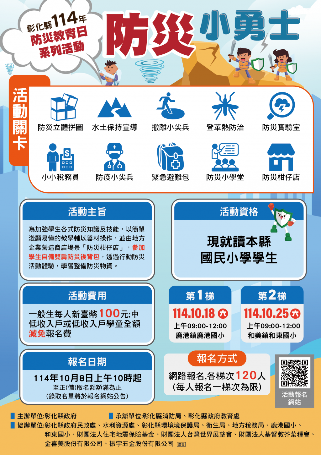 (三) 報名資訊請至「彰化縣防災資訊網-防災資訊-防災教育日系列活動專區(網址:https://changhuadp.com/)」查詢。
