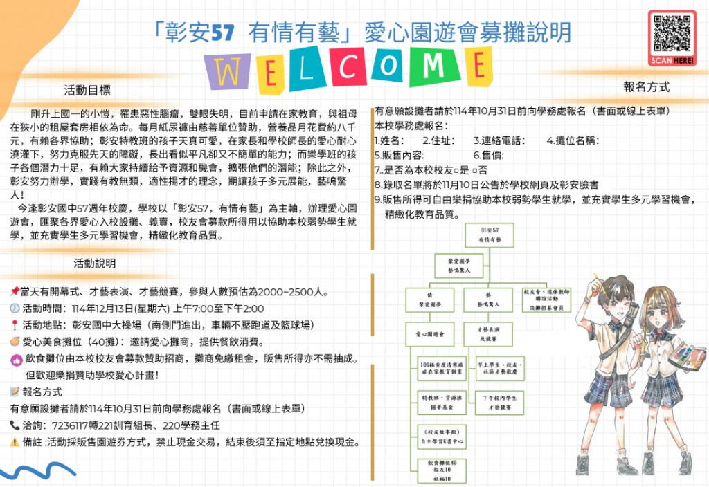 「彰安57 有情有藝 」愛心園遊會邀你一起來擺攤~
