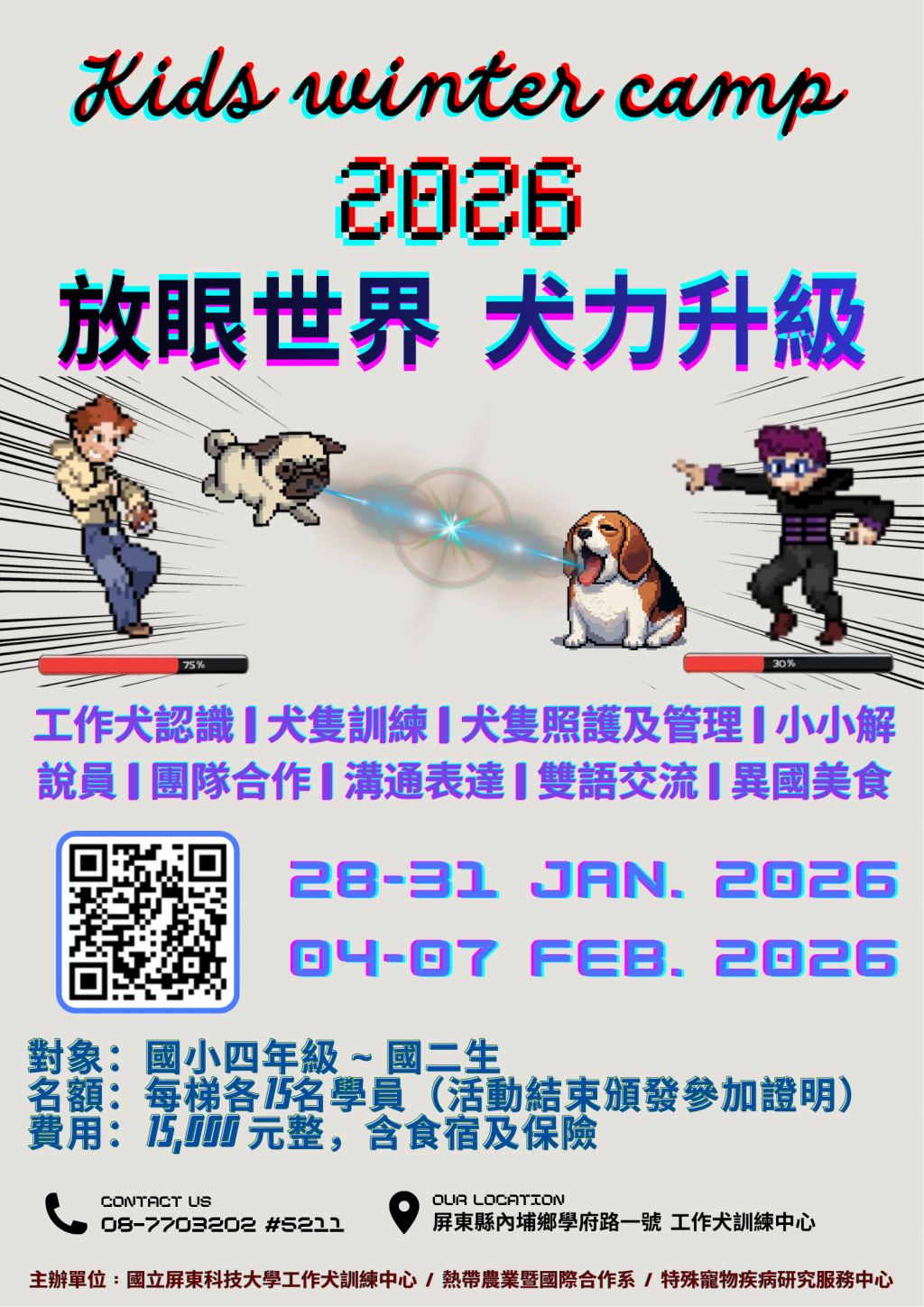 國立屏東科技大學工作犬訓練中心辦理2026冬令營「FUN眼世界 犬力升級」
