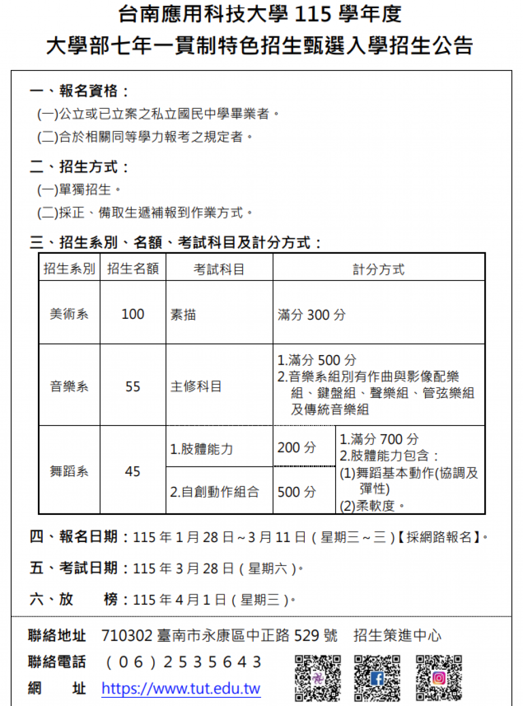網路報名日期:115年1月28日(星期三)至115年3月11日(星期三)