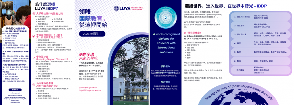 為推動國際教育,提供學子多元學習選擇,懷恩學校財團法人桃園市路亞國際高級中等學校(以下稱本校)辦理115學年度「IB國際文憑實驗班」特色招生入學,旨在培養具備批判思考與國際觀之優秀學子。
