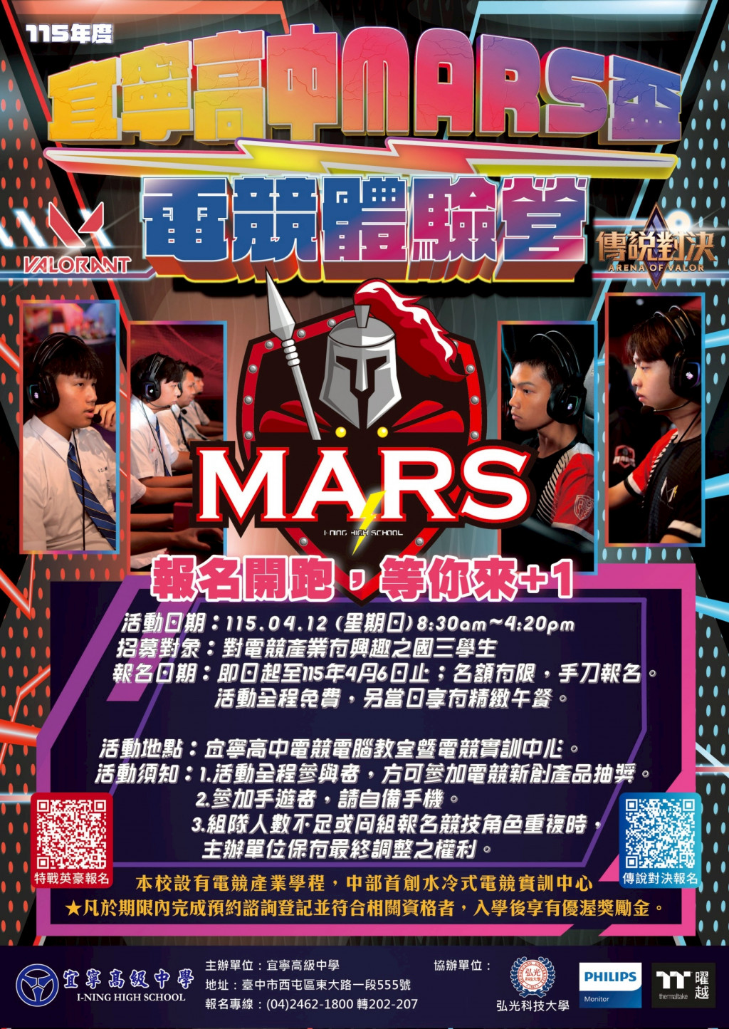 活動地點:宜寧高中行政大樓(4F)電競電腦教室暨電競實訓中心。