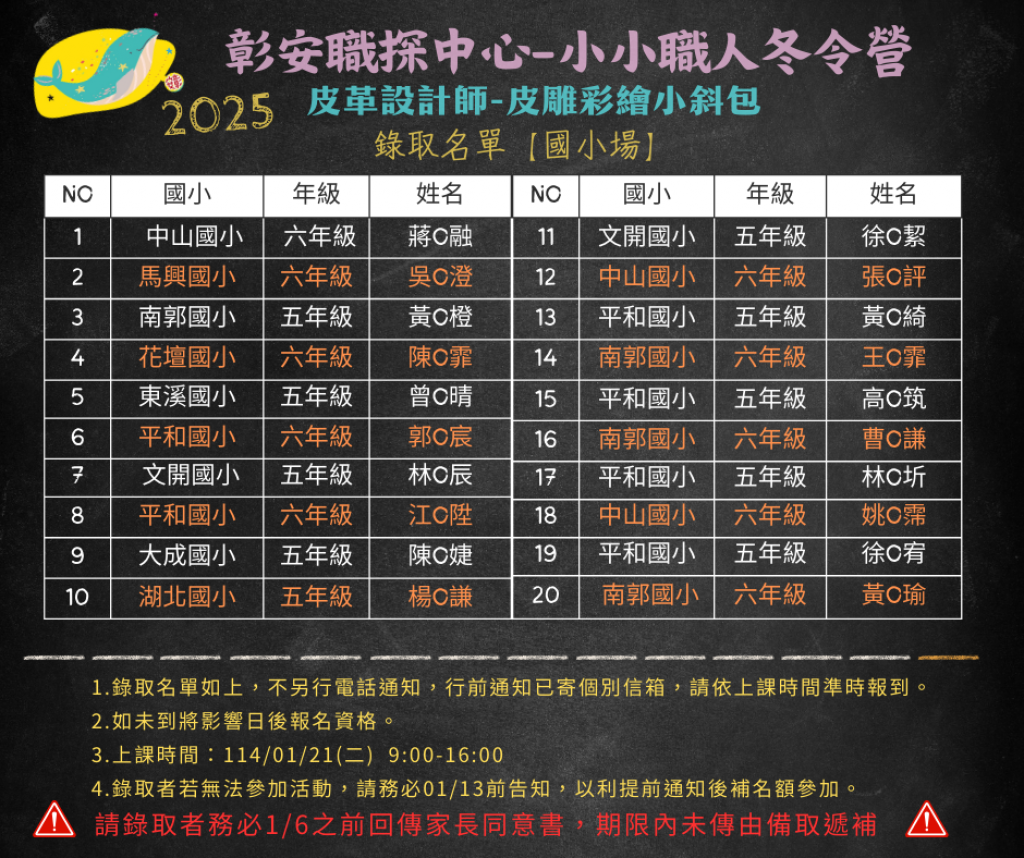 家長同意書,即日起至114.1/06之前回傳(期限內未傳由備取遞補)